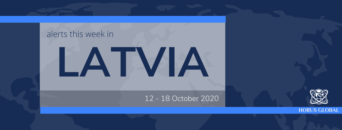 Latvia has a total of 3,056 COVID-19 cases and 41 deaths as of 16 October 2020. There is an increased risk to health and of disruption as efforts to halt the spread of the virus are to continue over the coming weeks.