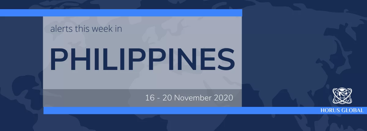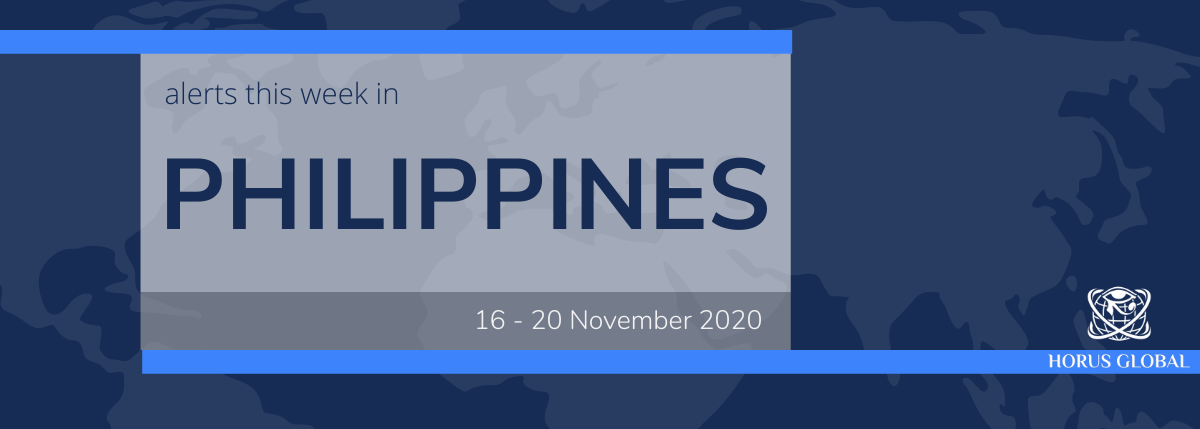 Philippines has a total of 410,718 COVID-19 cases and 7,862 deaths as of 18 November 2020. There is an increased risk to health and of disruption as efforts to halt the spread of the virus are to continue over the coming weeks.